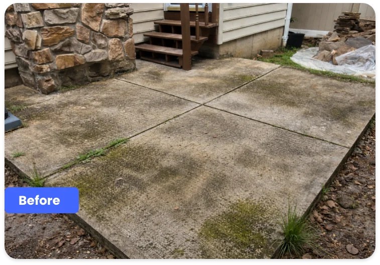 Years of dirt, mildew, and weather stains covering outdoor surfaces. Curb appeal significantly reduced.